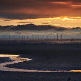 Shore, Sunset, Windmills